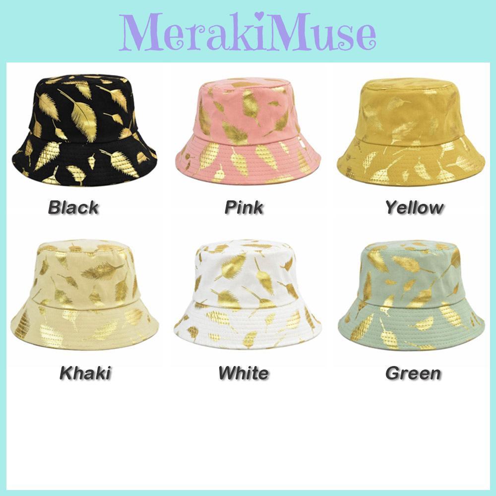 The gold leaf print bucket hat features a simple yet chic flat top design, perfect for those who appreciate understated elegance. The delicate print adds a touch of glamor and a touch of floral accents, making it a unique and eye-catching accessory.