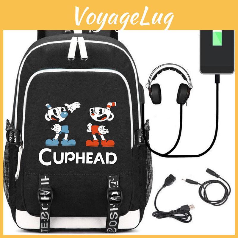Stilvoller Cuphead Rucksack mit USB-Ladeanschluss für Kinder und Jungen für den Schulgebrauch