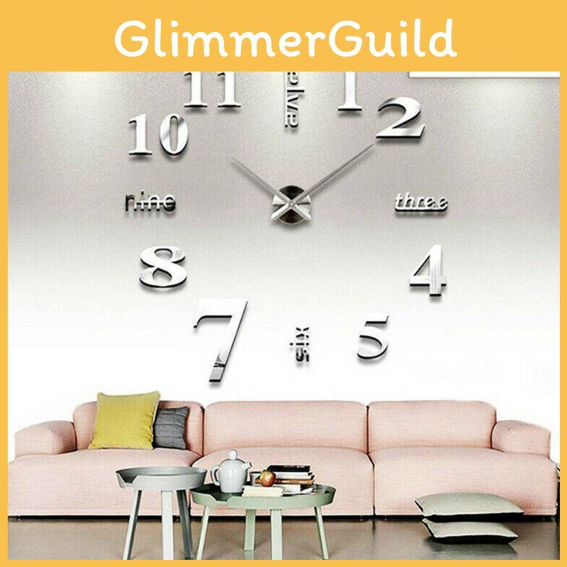 Große DIY 3D Rahmenlose Zahlenwanduhr mit leisem Uhrwerk und Spiegeloberfläche