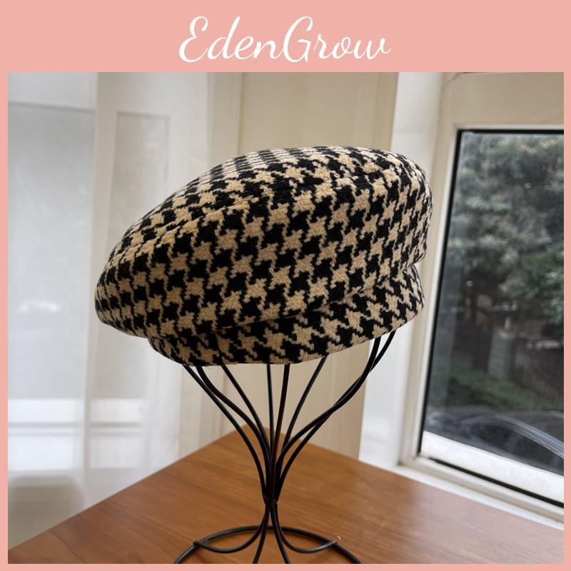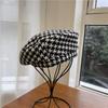 Schicke und trendige Damen-Barettmütze Japanisches minimalistisches Design Lässiges Karomuster Schwarz-Weiß-Farben