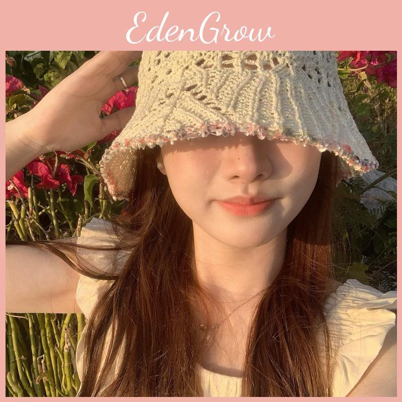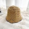 Stylish Round Top Knit Sun Hat With Floral Lace Trim Lightweight Sunscreen Bucket Cap For Summer