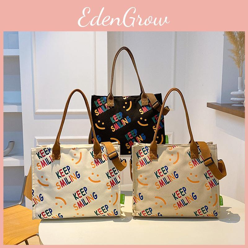 Large Capacity Smiley Face Canvas Shoulder Bag Women Tote Bag Street Trend Black