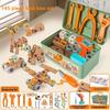 This kids construction playset features durable plastic tools and a screwdriver designed for DIY assembly and developing fine motor skills. The set includes multiple pieces measuring approximately 24.5*15*13cm in length, suitable for hands-on learning and creative building. Ideal for enhancing problem-solving abilities during playtime. Wipe clean with a damp cloth for maintenance.
