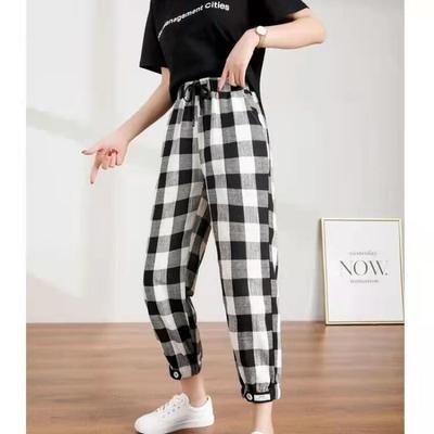 Frauen Frühling und Herbst Lange Plaid Hosen Lose Große Größe Casual Hosen Jogginghose