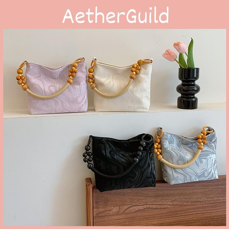 Chic Beaded Handheld Bag For Women 2024 Trendy Wooden Tote In Soft Colors