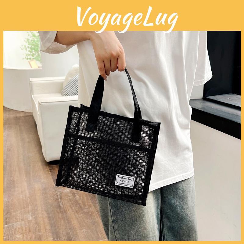 Stylish Korean Transparent Mesh Casual Beach Bag Large Capacity Tote Handbag