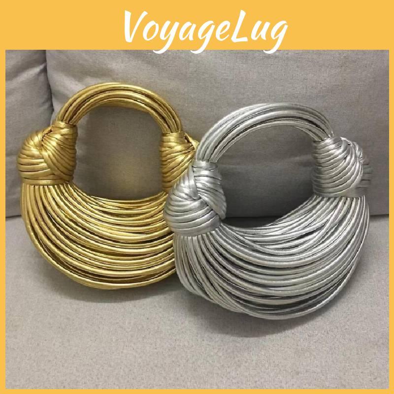 Stylish Gold Shoulder Bag French-inspired Handcrafted Woven Crossbody For Women