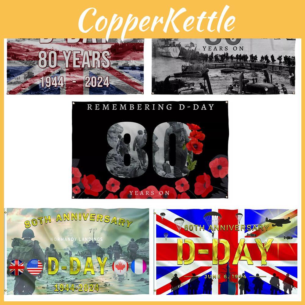Gedenk-D-Day-Flagge aus Polyesterstoff für die 80. Jahrestagsfeier