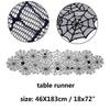 Gruseliger schwarzer Spitzentischläufer mit filigranem Spinnennetzdesign für Halloween