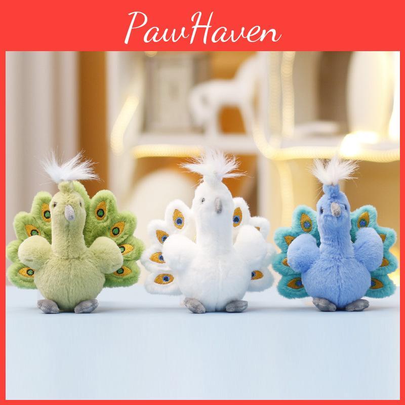 This soft plush peacock figure features a charming animal design, ideal for bag decoration and collection. Made of ultra-soft short plush and filled with durable PP cotton, it measures approximately 5.5 inches in height. The keyring attachment ensures easy portability and display. Suitable for use as a decorative accessory or gift, it enhances bags or backpacks with a touch of playful elegance. To maintain its appearance, wipe clean with a damp cloth as needed.