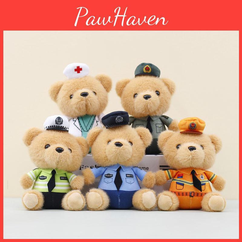 Weiches und knuddeliges Polizisten-Bären-Plüschtier Schlüsselanhänger Ideal für Taschen-Dekoration und Geschenke