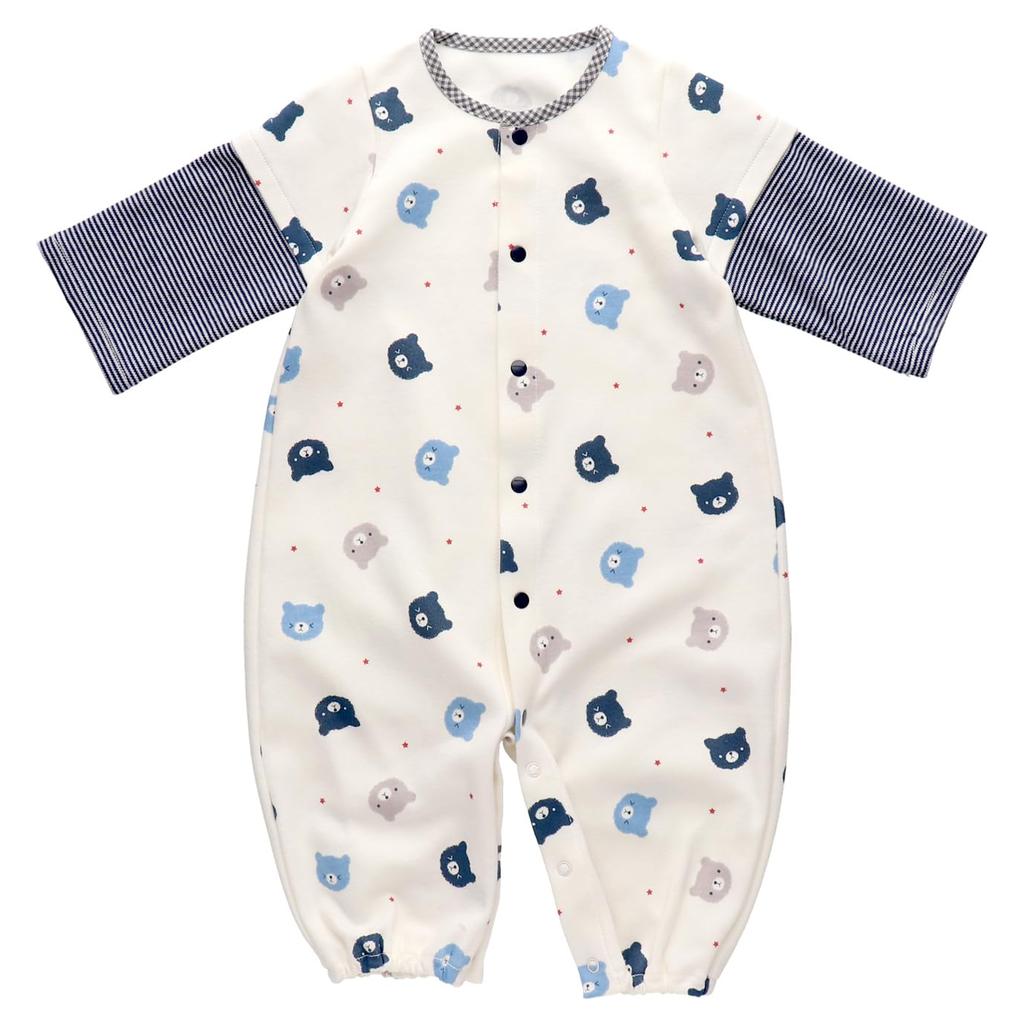 [Two Ways to Use] Immediately after birth, use it as a dress-type garment that completely covers the baby's legs. Simply flip it over for quick diaper changes, making it convenient and easy. Once your baby starts kicking their legs, fasten the buttons under the crotch to turn it into a coverall-type garment. No need to worry about it coming undone, even when your baby is actively kicking their legs.