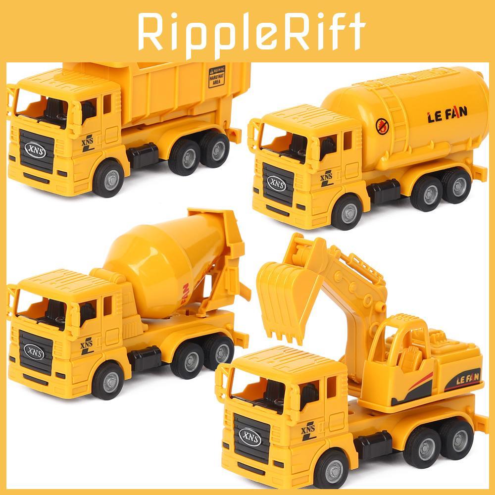 This children's toy car set features colorful, durable plastic construction with multiple movable parts and a push-and-go pull-back mechanism. The excavator, dump truck, mixer, and tanke promoting fine motor skills and imaginative play. Ideal for classroom activities or as a gift for young learners. Wipe clean with a damp cloth for maintenance.