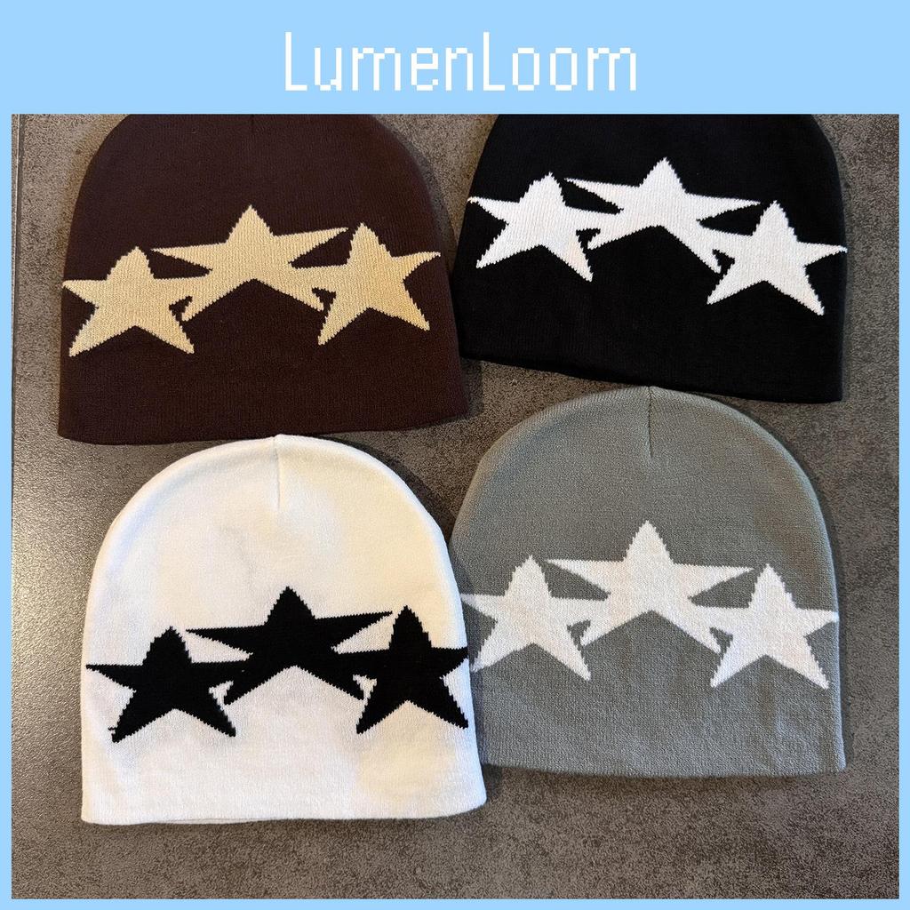 Herbst Winter Acryl Mütze mit hohem Bund und Sternenmuster für lässige Streetwear
