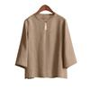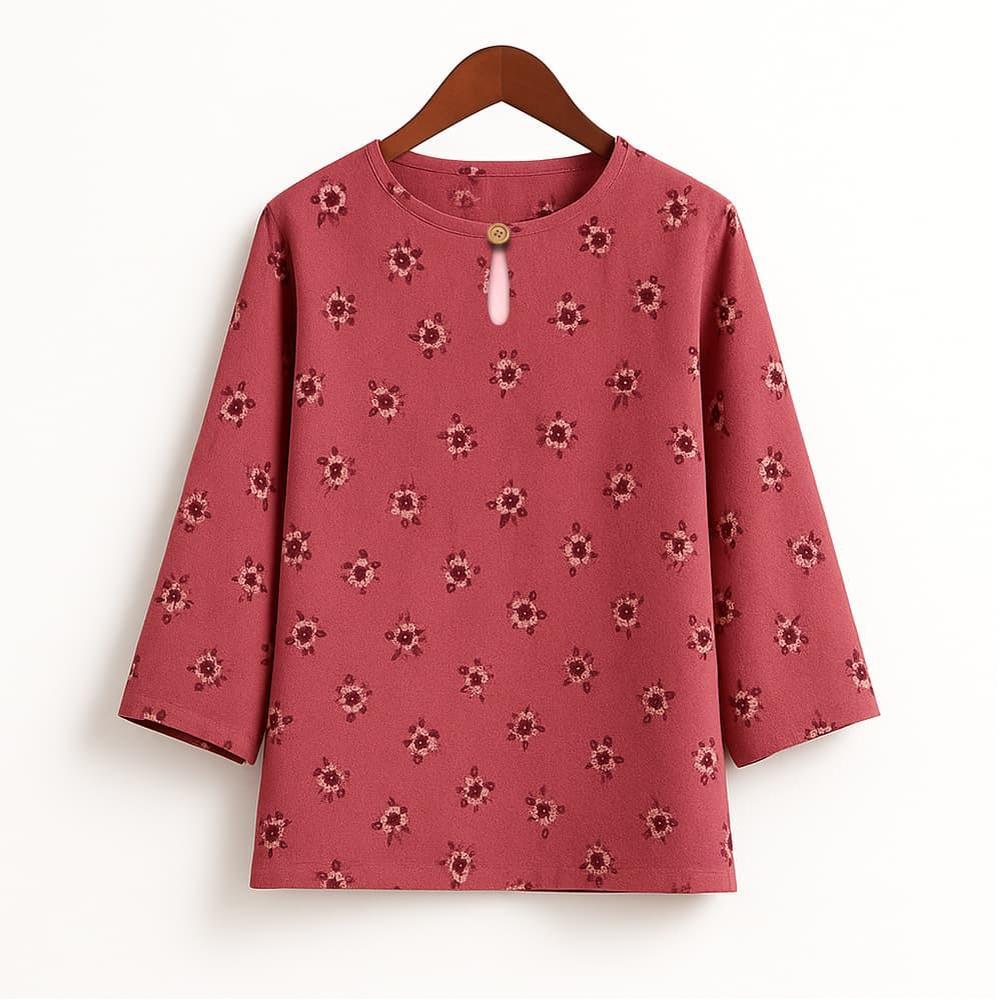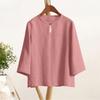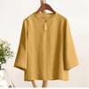 Vintage Casual Blouse, For Women, Elastic Hemp, Floral Print, Round Neck, Three-Quarter Sleeves, Elegant Loose Top