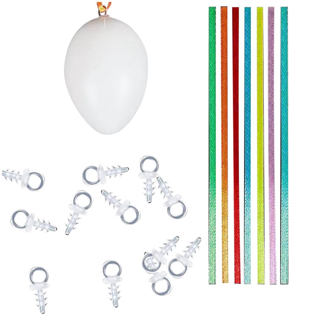 50 Stück Ostereier Zählbar Bunt Plastik Falsche Eier mit Schnur DIY Bemalen Geschenk