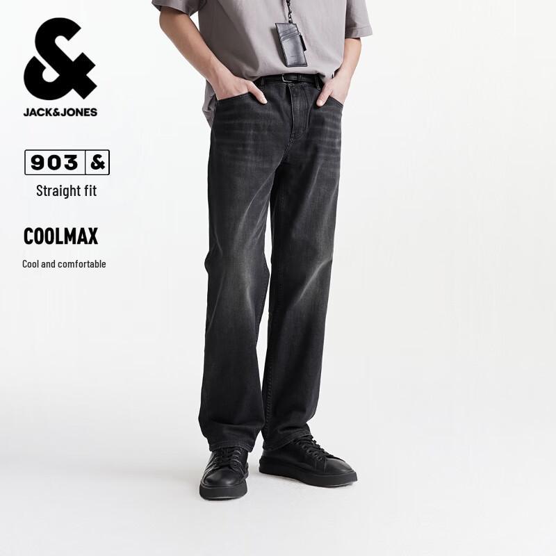 JACK&JONES Men's Spring Cool-Touch Washed Loose Wide-Leg Jeans