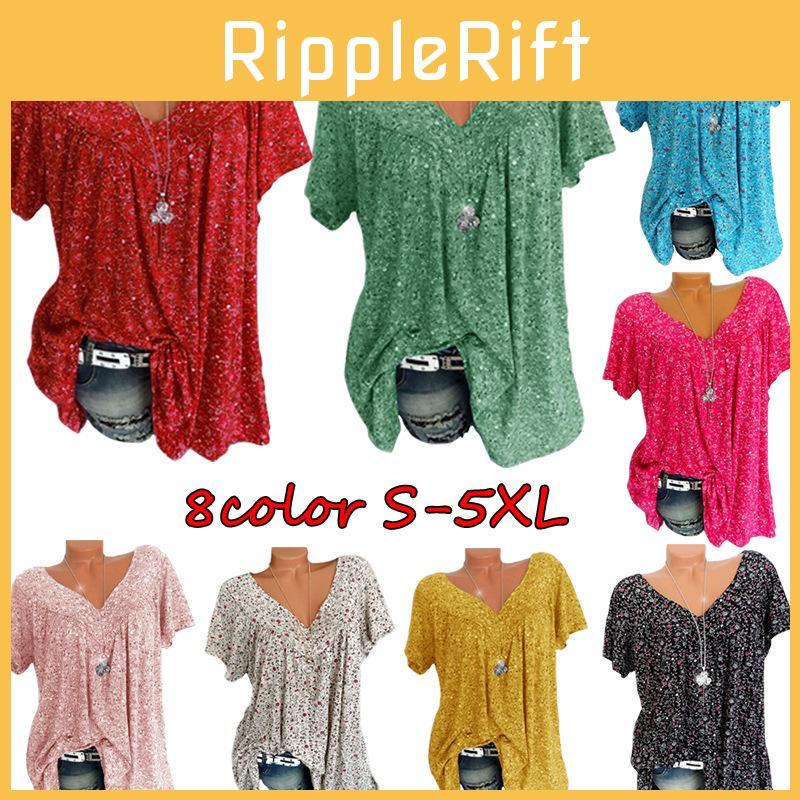 Stilvolle Damen V-Ausschnitt Blumen-T-Shirts Mit Übergrößenoptionen Für Sommerlichen Komfort