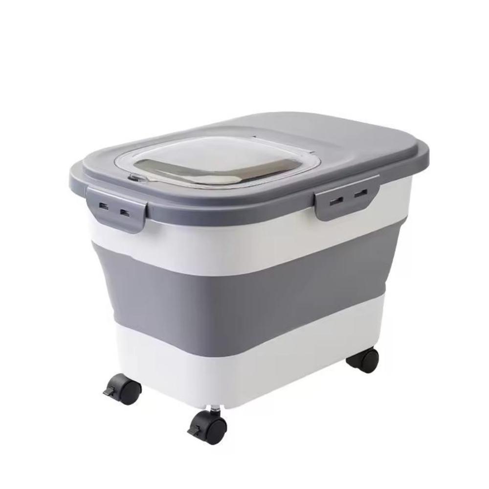Großvolumiger Futterbehälter für Katze und Hund, faltbar, versiegelnd, Küchen-Aufbewahrungsboxen für Getreide und Reis mit transparentem Deckel, Eimer für Trockenfutter