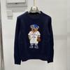 Damen Jacquard Wollmischpullover mit gesticktem Cartoon-Bär-Design