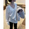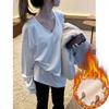 Werten Sie Ihre Herbst- und Wintergarderobe mit diesem eleganten Layering-Oberteil auf.. Gefertigt aus reiner Baumwolle und doppelseitigem deutschem Samt, bietet das Hemd ein kuscheliges und weiches Gefühl auf der Haut.. Sein einfarbiges Muster und das V-Ausschnitt-Design machen es zu einer vielseitigen Ergänzung für jedes Outfit, während die langen Ärmel und die lockere Passform sowohl Komfort als auch Stil bieten.. Perfekt zum Kombinieren mit Jeans oder Leggings, ist dieses mittellange Oberteil ideal für die Kreation mühelos schicker Lagenlooks in den kühleren Monaten.