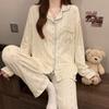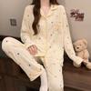 Dieses entzückende Pyjama-Set ist perfekt für junge Mädchen, die Komfort und Stil lieben.. Gefertigt aus luxuriösem Milchseiden-Kreppstoff, bietet das Set ein weiches und atmungsaktives Tragegefühl, was es ideal für gemütliche Heimkleidung macht.. Die Strickjacke hat ein charmantes Reversdesign, und die langen Ärmel bieten zusätzliche Wärme während kühlerer Frühlingsnächte.. Dieses Set sorgt für einen erholsamen Schlaf und hält Ihren kleinen Liebling stilvoll warm.