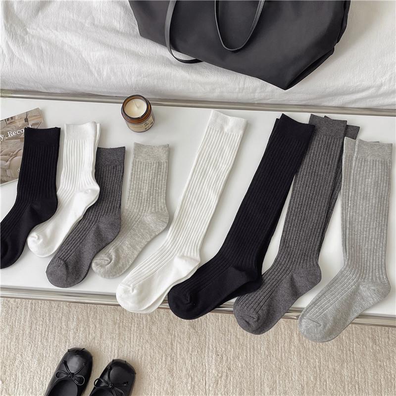 Miu Style Women's Retro Vertical Striped Mid-Calf Socks - Versatile Solid Color Slimming Slouch Socks