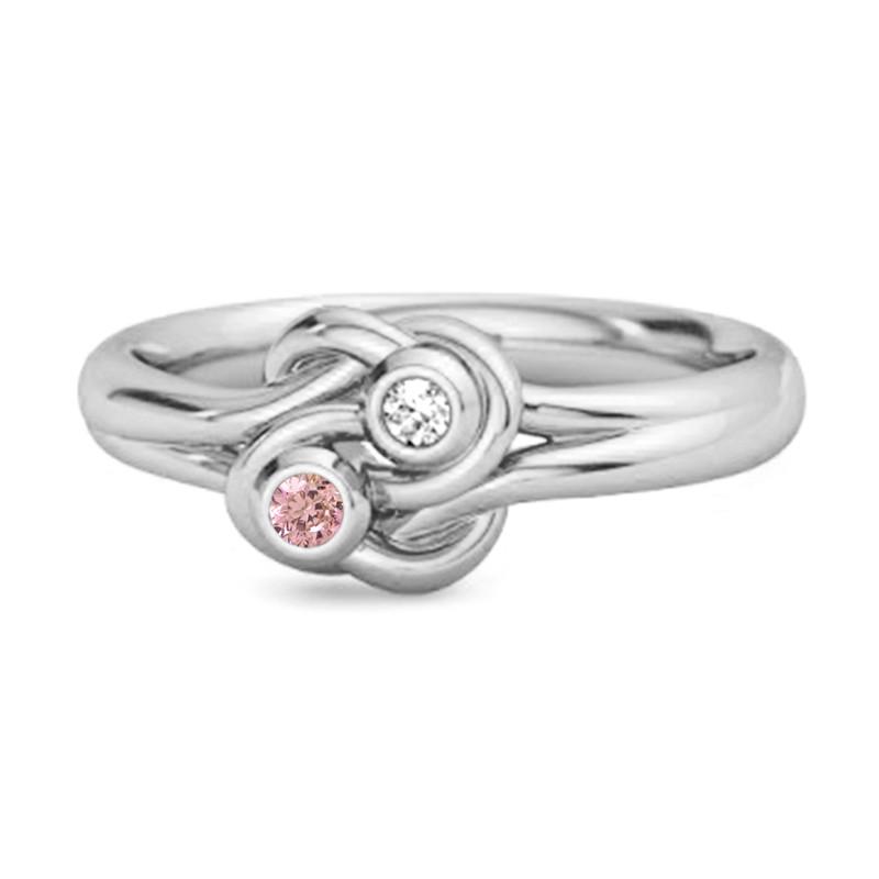 Sterlingsilber Zweisteinring mit rosa und weißem Zirkonia. Elegantes gedrehtes Design, 0,04 ctw – ein perfektes Symbol der Verbundenheit.