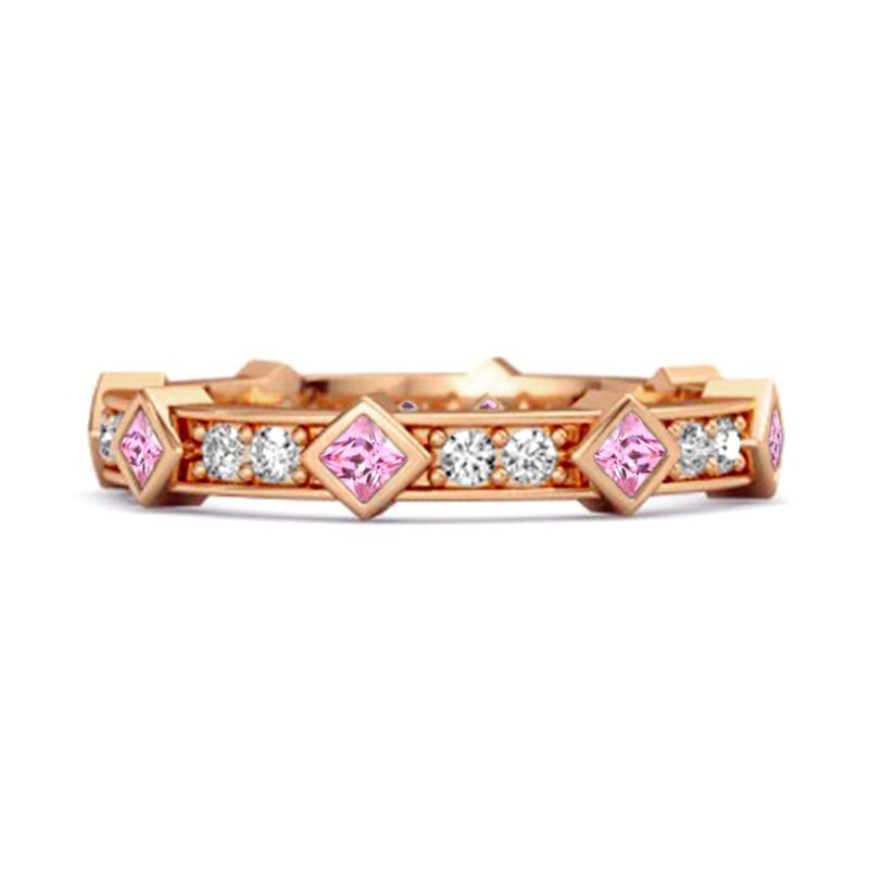 Rosa Zirkonia Eternity Band Damen Ehering - 925 Sterlingsilber Roségold Vermeil
