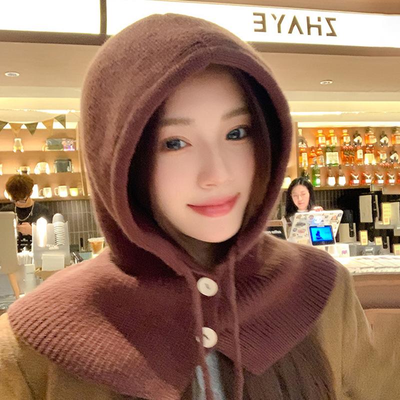 Schlichter Schal im koreanischen Stil mit integriertem Nackenschutz, warm, gestrickt, Wolle, Ohrenschutz, Schal, Mütze