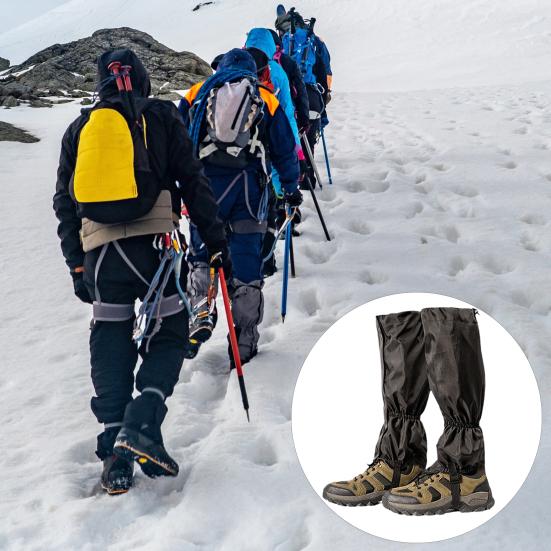 Rutschfester Bodenhaftung: Ausgestattet mit einem hochfesten Anti-Rutsch-Riemen, der sicher an den Sohlen von Wanderschuhen verankert wird, um Verschiebungen bei Bewegungen zu minimieren, und ergänzt durch einen unteren verstellbaren Kordelzug, der einen dichten Abschluss um den Schuhoberteil bildet, blockiert dieses Design effektiv das Eindringen von Sand, Schnee und Schmutz aus dem Basisbereich..