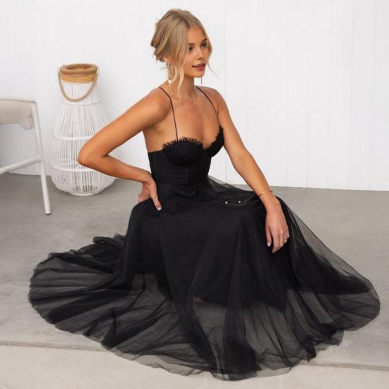 Dieses elegante Damenkleid ist aus hochwertiger Polyesterfaser gefertigt, was ein weiches und angenehmes Tragegefühl gewährleistet.. Das Mesh-Saumdesign verleiht dem Gesamtlook einen Hauch von Schönheit und Raffinesse.. Perfekt für verschiedene Anlässe wie Alltagskleidung, Bankette, Partys, Tänze, Aufführungen und Hochzeiten.
