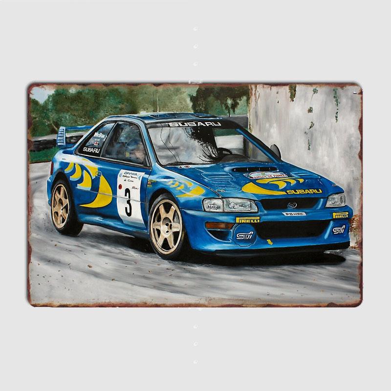 Oldtimer Rallye Colin McRae Rally WRC scooby Retro Poster Metallschild Garagen Clubraum Dekor Wanddeko Benutzerdefinierte Blechdose Heimdeko