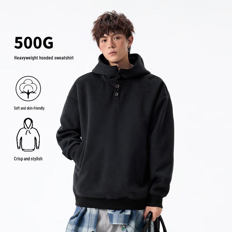 MEDE Men's Half-High Collar Button Hooded Sweatshirt