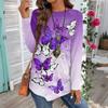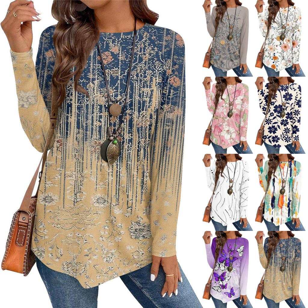 Lässiges Damen-T-Shirt in Übergröße mit langen Ärmeln, Rundhalsausschnitt und Vintage-Ethno-Print, Pullover