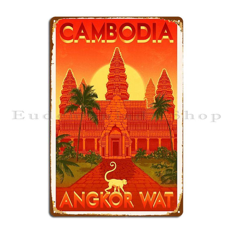 Travel Posters Angkor Wat Cambodja Metal Sign Garage Mural Iron Wall Decor Plaques Tin Sign Poster