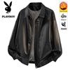 PLAYBOY Men's American Retro Plush Lined Leather Jacket