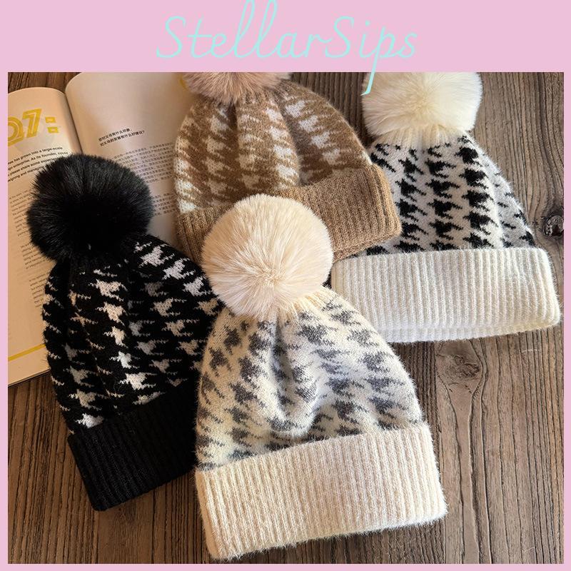Knit Hat For Women With Vintage Houndstooth Pattern And Warmth For Autumn Winter Fashion