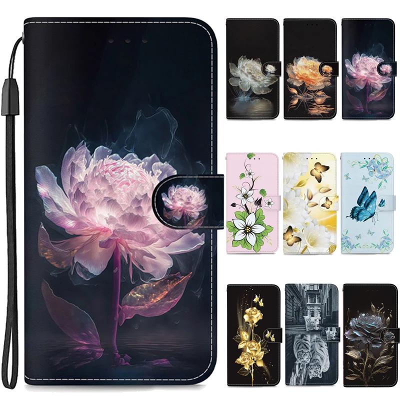 Hülle für Samsung Galaxy A15 A05s A05 A25 A24 A14 4G A34 A54 5G A155 A156 A256 Leder Klappständer Handyhülle Süße Blume Capa