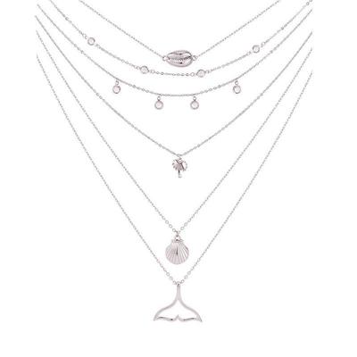 Modisches Punk Boho Retro Legierung Handfläche Sonne Mehrschichtiges Halsketten mit Blatt und Elefanten Anhänger