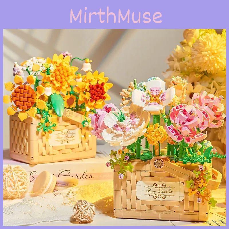 Rose Violette Vase Bausteine Sonnenblume Blumenstrauß DIY Kreatives Spielzeug für Kinder und Erwachsene