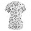 Damenmode V-Ausschnitt Kurzarm Overalls mit Taschen Print Tops Kleidung