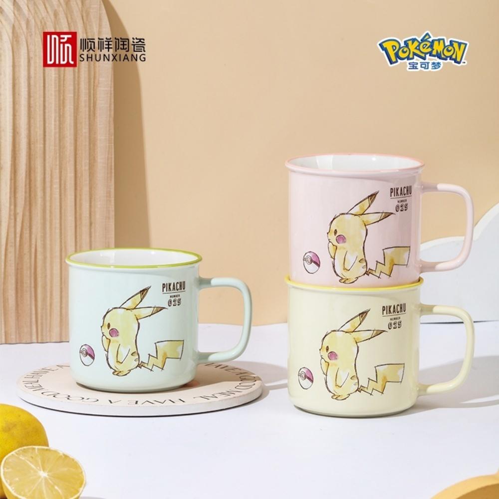 SHUNXIANG Pokémon Lizenzierte Pikachu Keramiktassen Kawaii Muster Frühstück Milchbecher Kinder Kaffeetassen Trinkgeschirr Geschenk