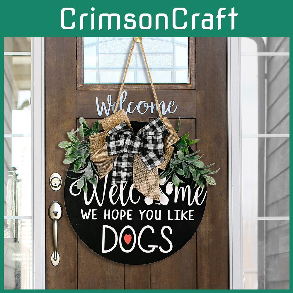 Charmantes rustikales Holzschild für Hunde mit entzückender Schleife und blätterreichem Kranz zur Heimdekoration