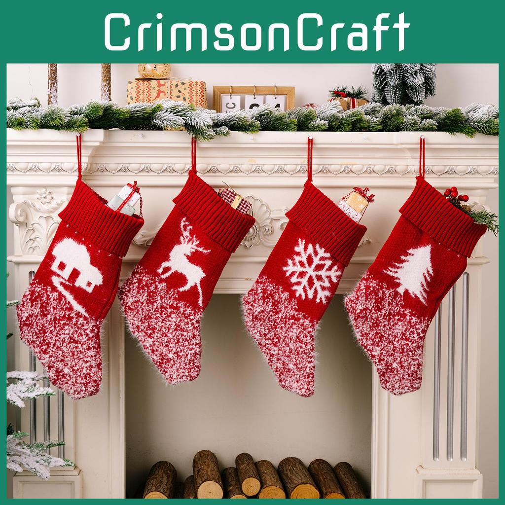 Charmantes Design: Unsere wunderschönen roten gestrickten Weihnachtsstrümpfe zeigen festliche Schneeflocken, Rentiere und Weihnachtsbäume und verleihen Ihrem Zuhause einen Hauch von Weihnachtszauber.