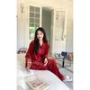 11 Couples wedding pajamas autumn Australian velvet long-sleeved natal burgundy loungewear autumn men's and women's pajamas