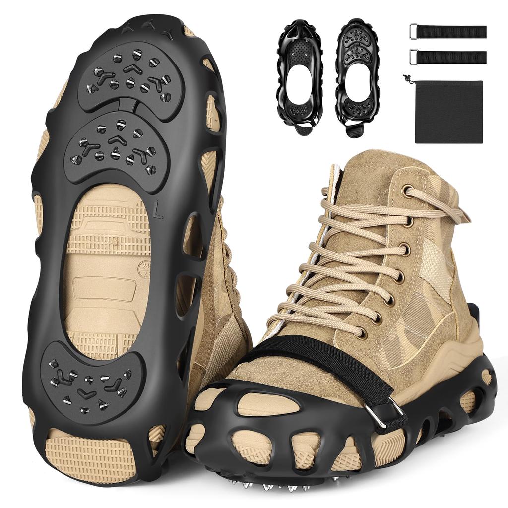 Dies sind Bergsteigerschuheisen, die an Ihren Schuhen befestigt werden, um eine ausgezeichnete Anti-Rutsch-Leistung zu bieten und Ihnen ein sicheres Gehen auf Schnee zu ermöglichen.