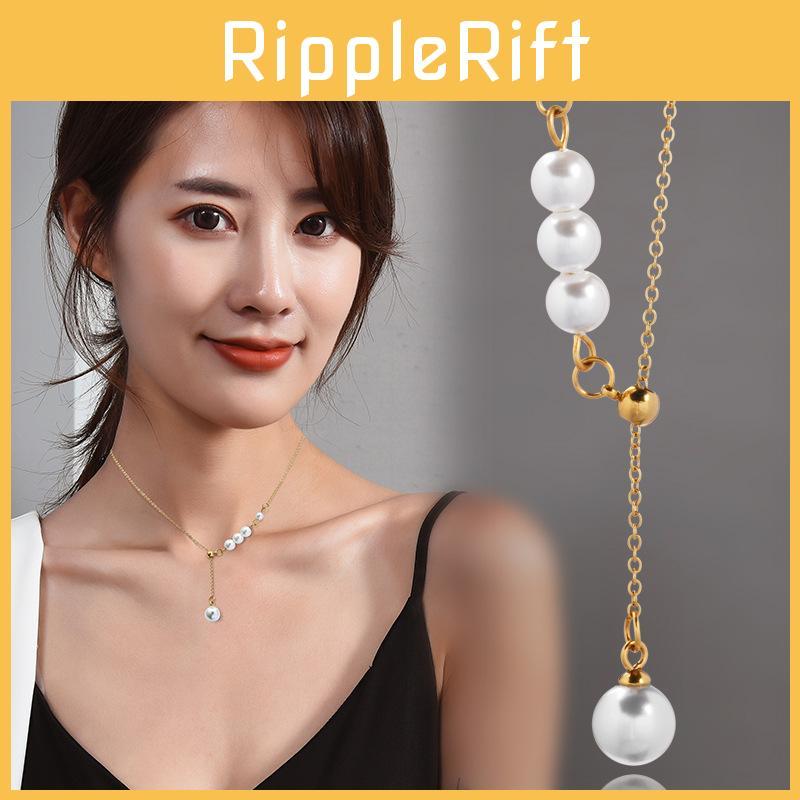 Elegante Y-förmige Perlenkette aus Titanstahl für Damen mit verstellbarer Länge und einzigartigem Stil