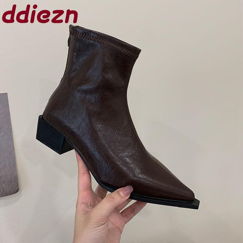 Mode Mode Stretch Damen Stiefeletten mit Absatz Schuhe Spitzschuh Damen Moderne Kurze Stiefel Weiblich Reißverschlüsse Schuhe Pumps