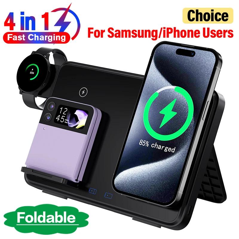 【Universell kompatible kabellose Ladestation【Die 4-in-1-Ladestation ist kompatibel mit iPhone 15/14/14 Pro/14 Pro Max/14 Plus/13/13 Pro/13 Pro Max/12/12 Pro, AirPods und Apple Watch Series 7/6/SE/5/4/3/2. Für Samsung Galaxy S23/S22/S21/S20/S10/S9/S8/S7/S6 Serie; Hinweis20/10+/10/9/8/5; Für iPhone; Google Pixel; LG und andere unterstützen das kabellose Laden von Mobiltelefonen (2) Kompatible Smartwatch-Modelle: Für Galaxy Watch 5/5 Pro; Galaxy Watch 4/4 Classic; Galaxy Watch 3/LTE; Galaxy Watch; Galaxy Watch Active 2 LTE/ 2/1. (3) Kompatible Kopfhörermodelle: Für Samsung Galaxy Buds/Live;